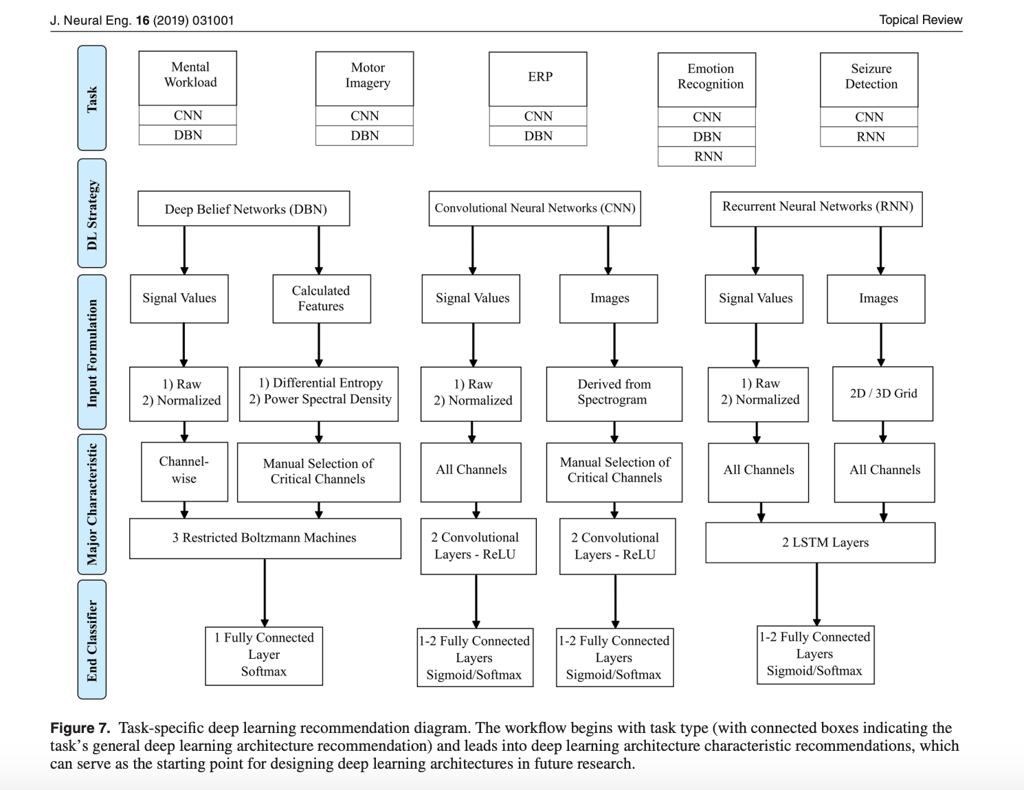 Exploring the potential of convolutional neural networks in EEG data classification and what this could mean for the future of EEG signal data research. Summary workflow diagram excerpted from the below paper on DL in EEG. This paper has reviewed 90 published papers and provides a workflow diagram of DL in EEG classification.